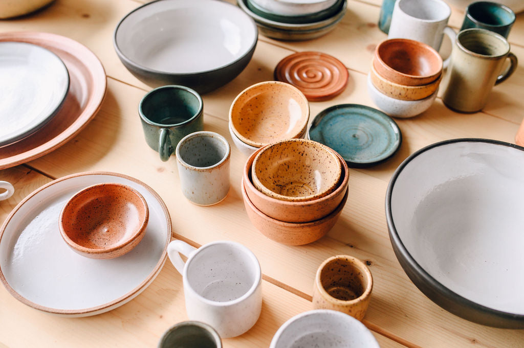 Our pieces are intended to be mix and matched, and we are happy to accommodate custom dinnerware orders. Visit our Glaze Guide page to find exactly what you're looking for, or reach out to us directly to help you find your perfect match.